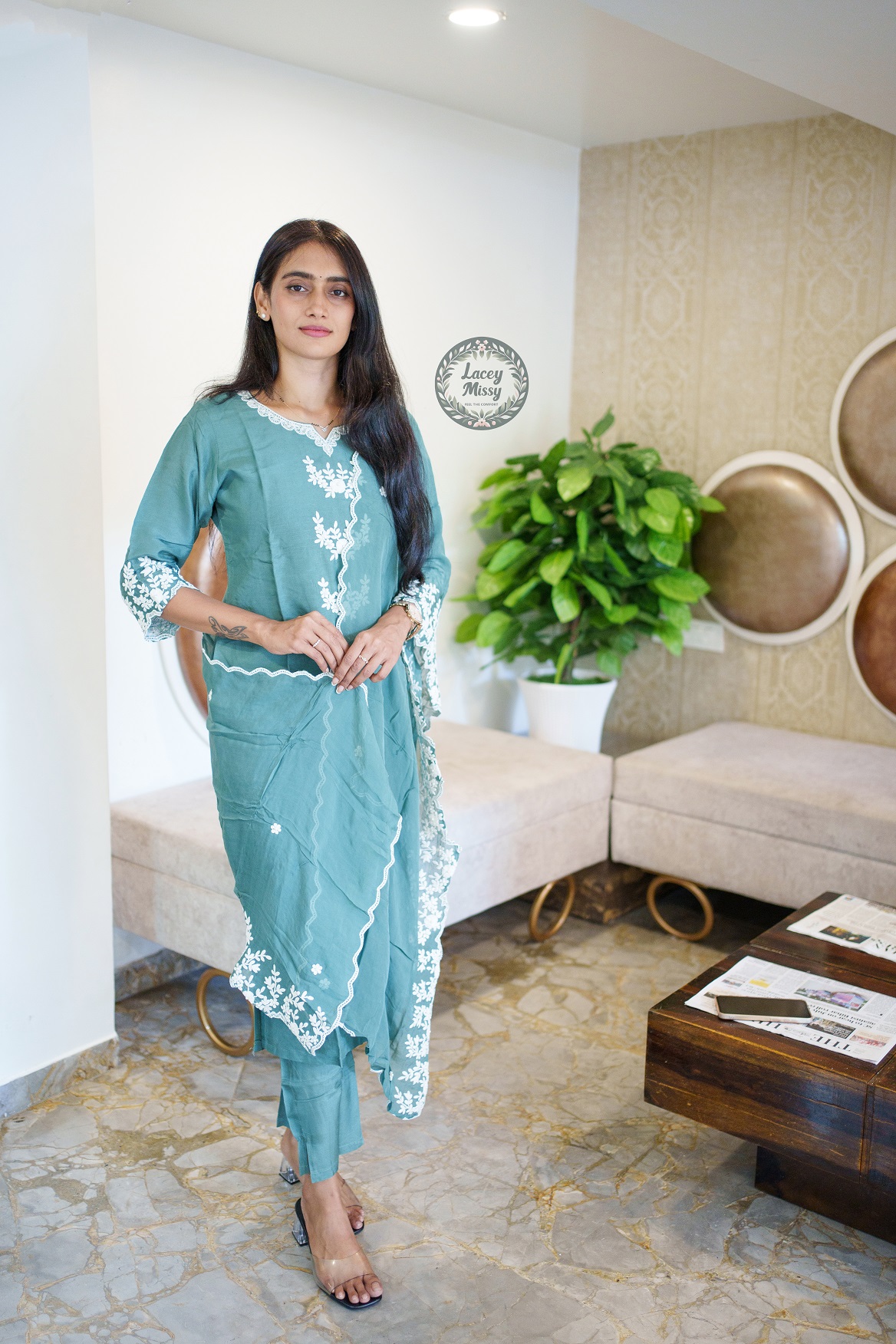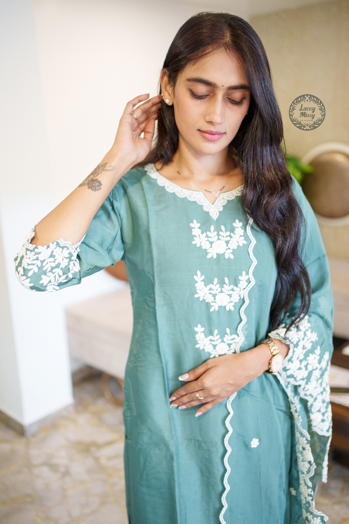 Experience the comfort and elegance of premium Dola silk fabric. Hand embroidered. Ideal for function wear & suitable for semi-formal occasions.